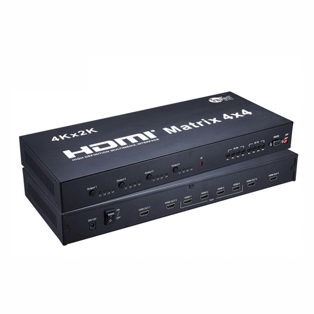 Este matriz HDMI es una verdadera matriz de 4 por 4 HDMI. Permite a cualquier fuente (reproductor de Blue-Ray, reproductor de HD DVD, receptor de satélite, sistema de juego, etc.) que se muestra en la cualquiera de las cuatro pantallas simultáneamente, sin importar la fuente es HDCP o no. extensión receptor de infrarrojos adicional, el emisor IR, RS232 se suministran para el control remoto.
