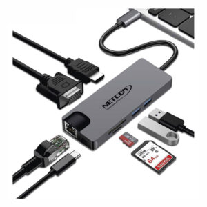 Concentrador USB-C de 8 puertos: convierte 1 puerto USB-C en un puerto de salida HDMI, un puerto Gigabit Ethernet (puerto RJ-45), un puerto de carga USB-C, 2 puertos USB 3.0, puerto hembra VGA y un SD y lector de tarjetas TF.